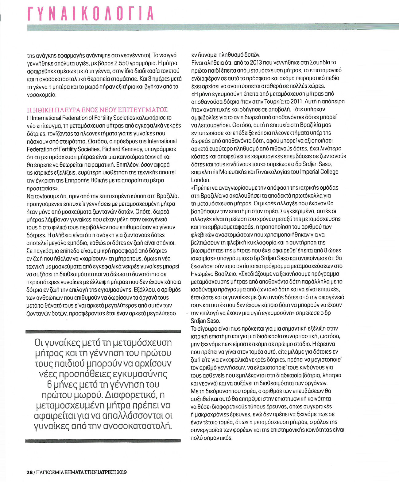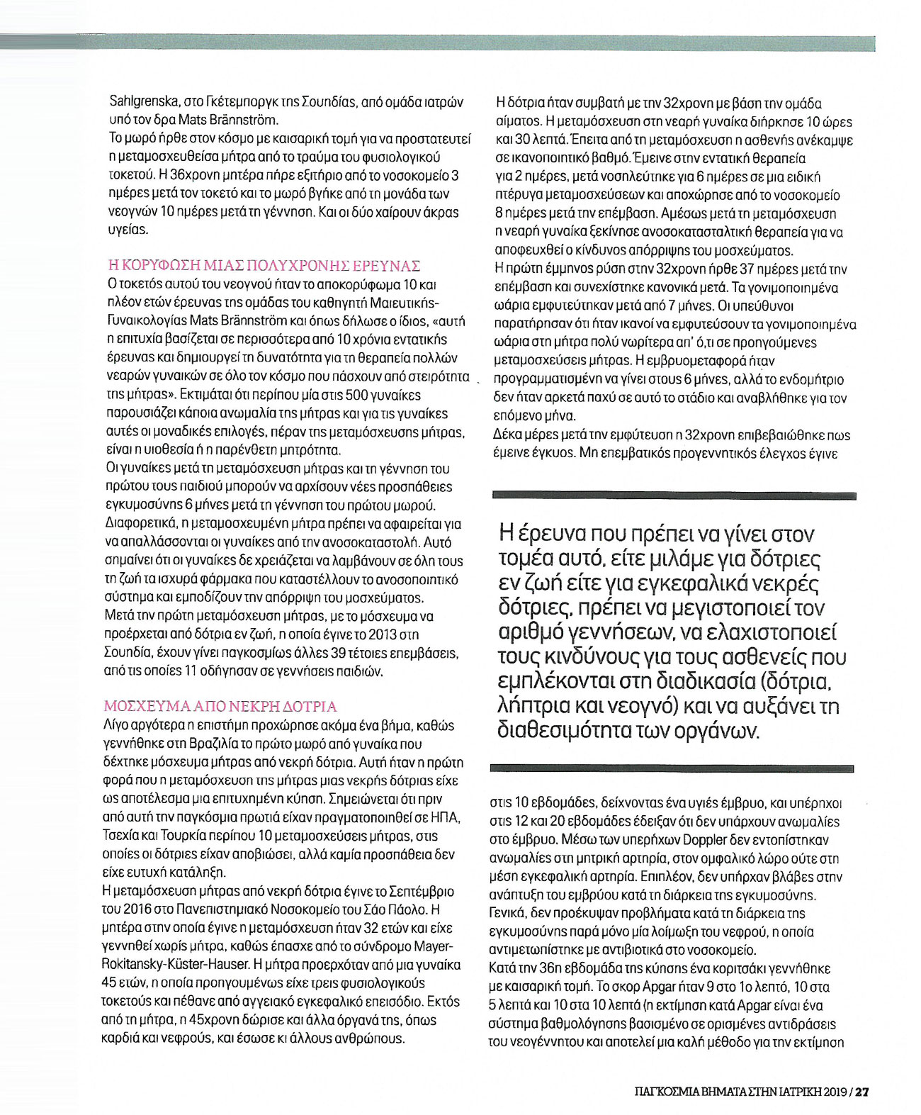 Childbirth after uterus transplant